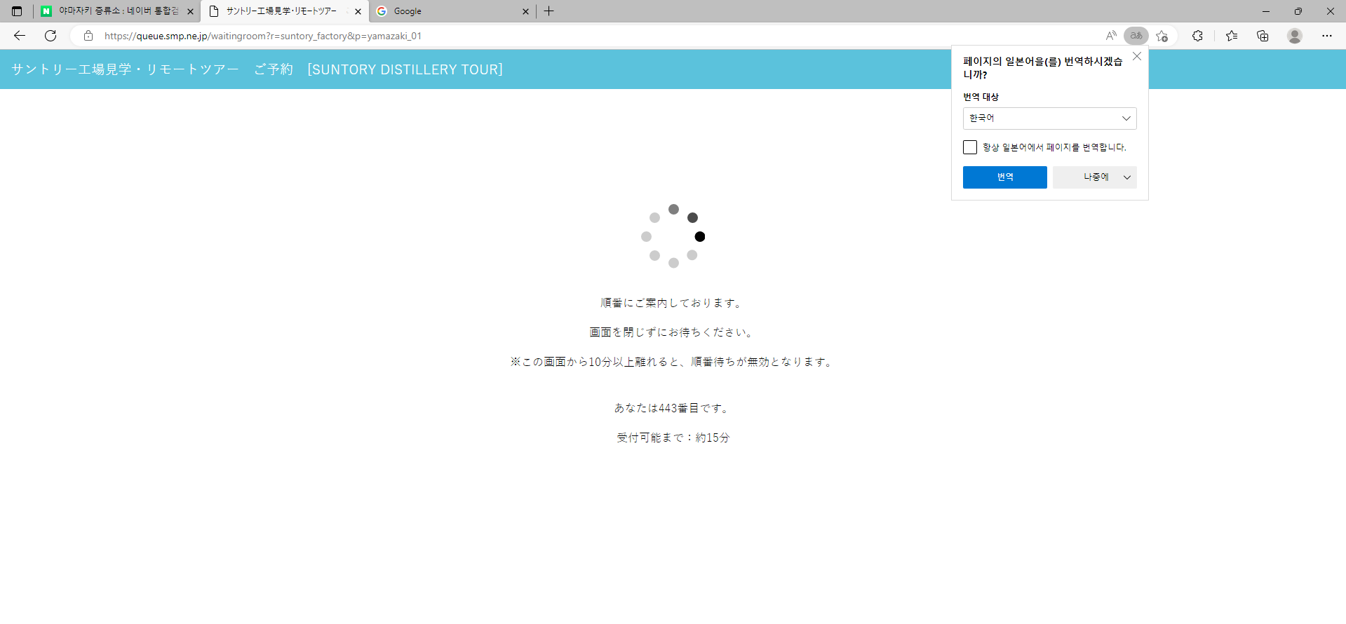오늘 오전 10시에 오사카 야마자키 증류소 투어 예약 오픈런!