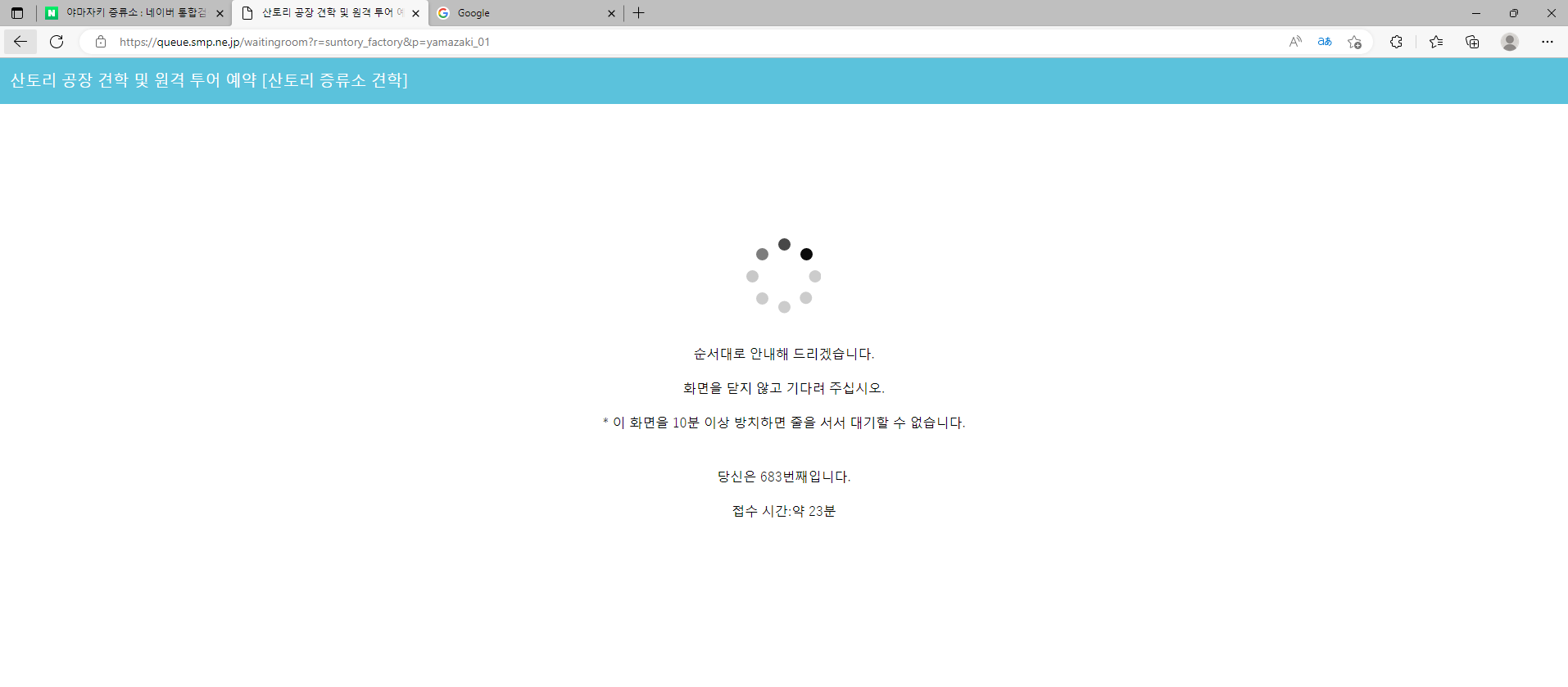 모바일로는 대기시간 8분에 1500명 대기라고 떴어요